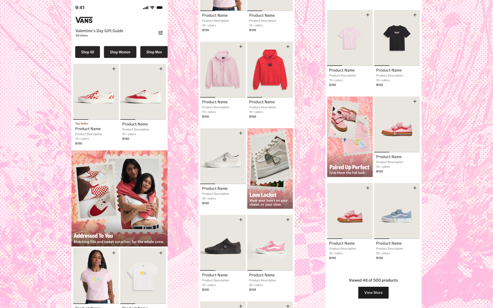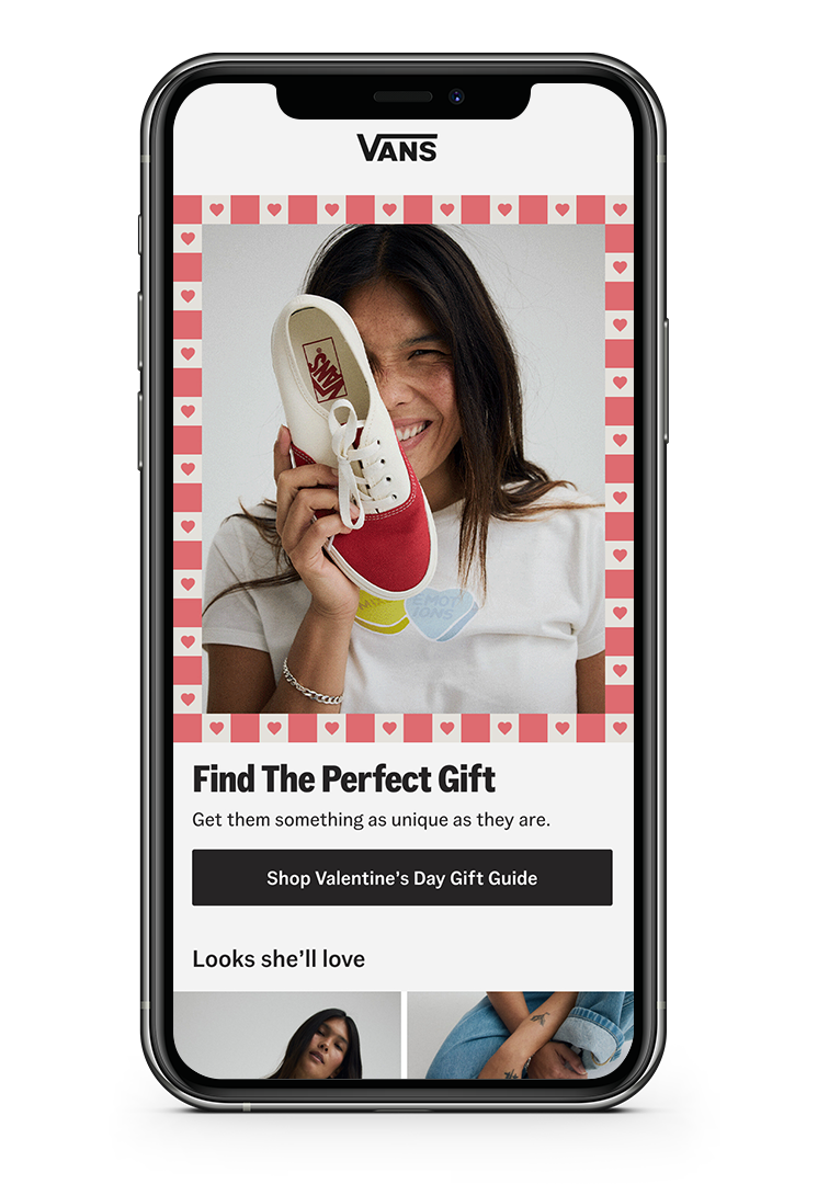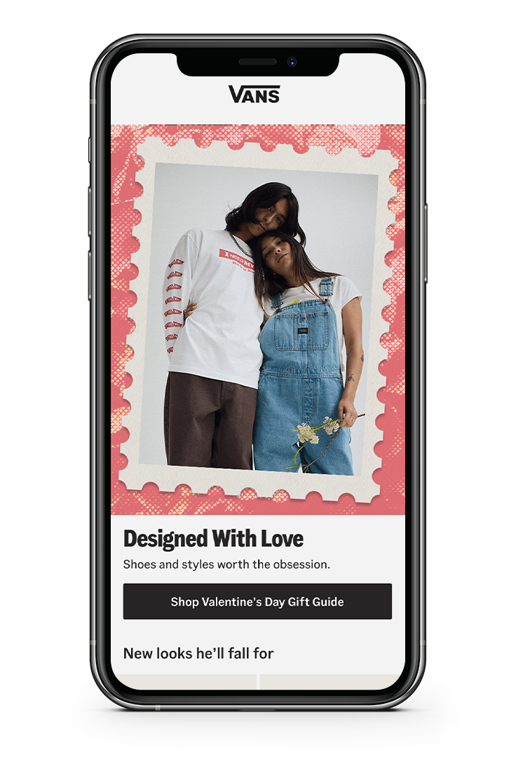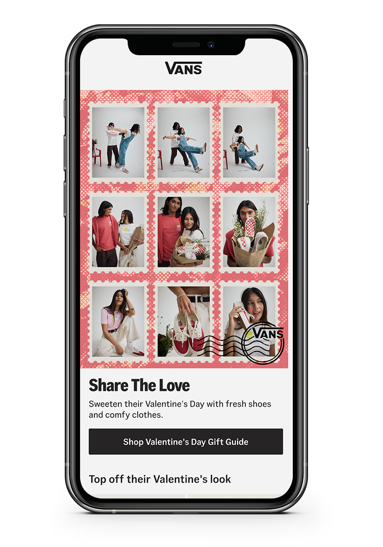 Looking to capitalize on the success of previous gift guides, Vans' digital marketing and ecommerce team wanted to expand the campaign for its collection of Valentines Day product beyond the ecommerce photography and video that was provided. I helped concept and implement design treatments and messaging that made its way across web and email.