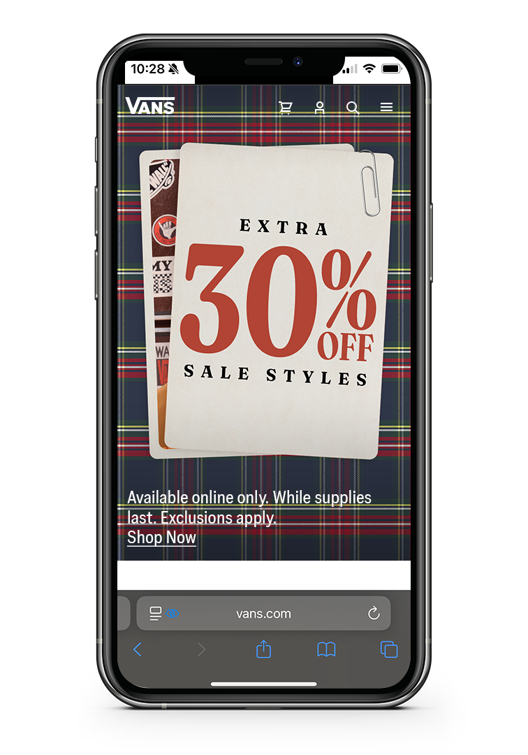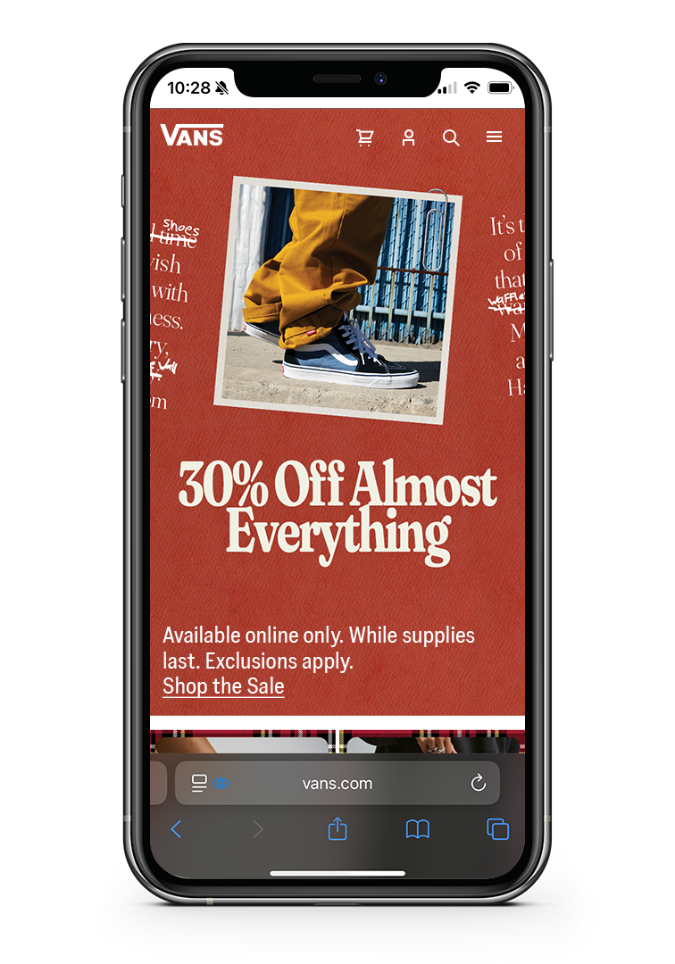 I helped create the look and feel of Black Friday and Cyber Monday using both our global toolkit and considerations of Vans' North American stock, goals, and specific marketing plans for two weeks of sales.I designed layouts for various direction and then created the assets alongside deliverables for Canada and contingency promos.