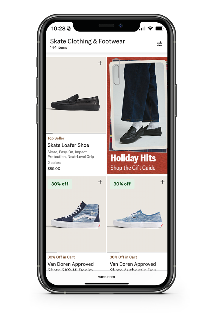 While the holidays are great, Vans wanted their homepage to stay fresh with new content drops instead of decking out every placement with campaign material. I pitched the idea of creating a specific landing page for all things holiday that would serve as an upper funnel experience for Vans' gift-minded shoppers.
